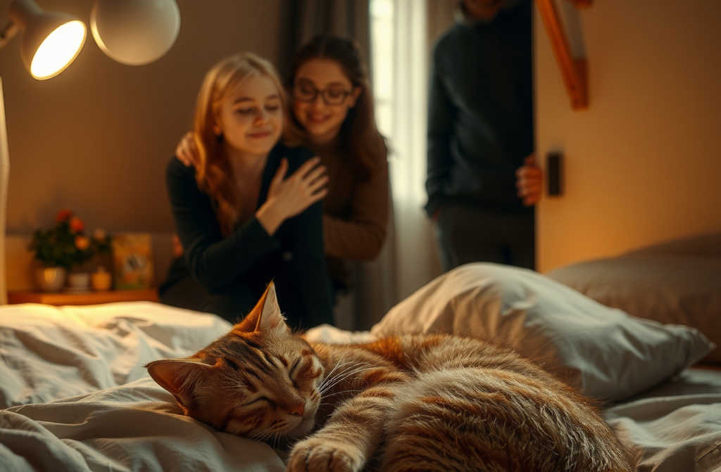 Tito darà una testata alla mano di Gianna, si stenderà accanto ad Alessia abbracciandola con la zampa. Gianna spegnerà la luce, farà cenno al marito di seguirla, e chiuderà piano la porta della cameretta.