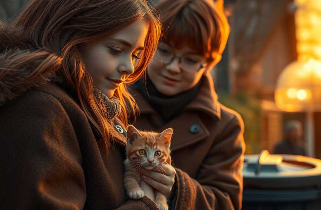 E il grande gatto rosso osservava stupito come il padre e la figlia si prendevano cura di lui. Era sveglio, e ora sentiva davvero il calore.